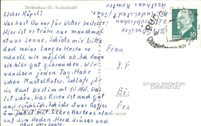 72198809 alte Postkarte Droebischau postalisch gelaufen Erhaltung siehe scans KatCode: 11110016073021