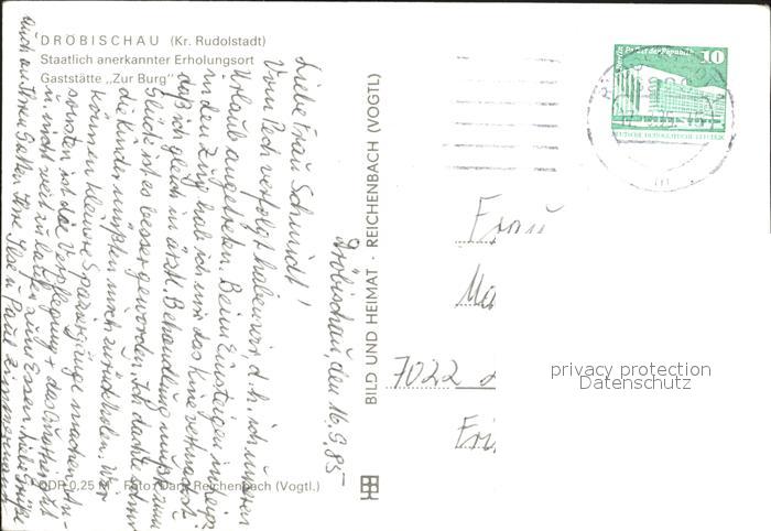 72313292 alte Postkarte Droebischau Restaurant Zur Burg postalisch gelaufen Erhaltung siehe scans KatCode: 11110016073021