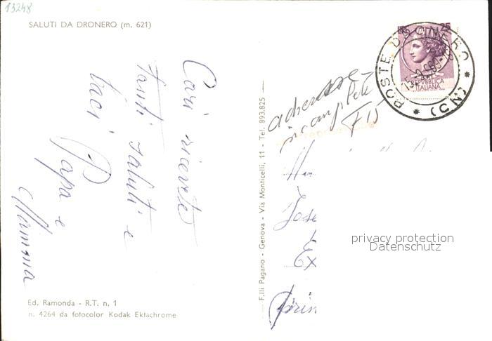 old postcard Dronero Cuneo Strassenpartie Denkmal Bruecke postalisch gelaufen Erhaltung siehe scans