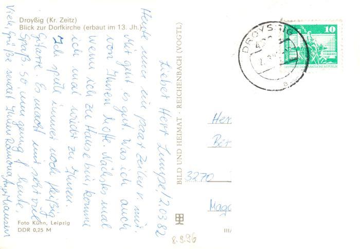 73891461 alte Postkarte Droyssig Dorfkirche postalisch gelaufen Erhaltung siehe scans [WerneD78] KatCode: 11110015084115
