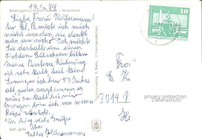 72046425 alte Postkarte Druebeck Erholungsheim Kloster Druebeck Garten postalisch gelaufen Erhaltung siehe scans KatCode: 11110015085095