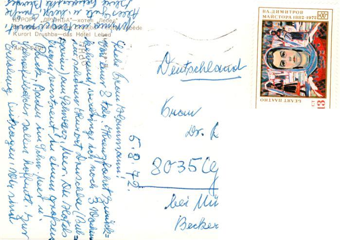 old postcard Drushba BG Hotel Lebed postalisch gelaufen Erhaltung siehe scans [FriedD77]