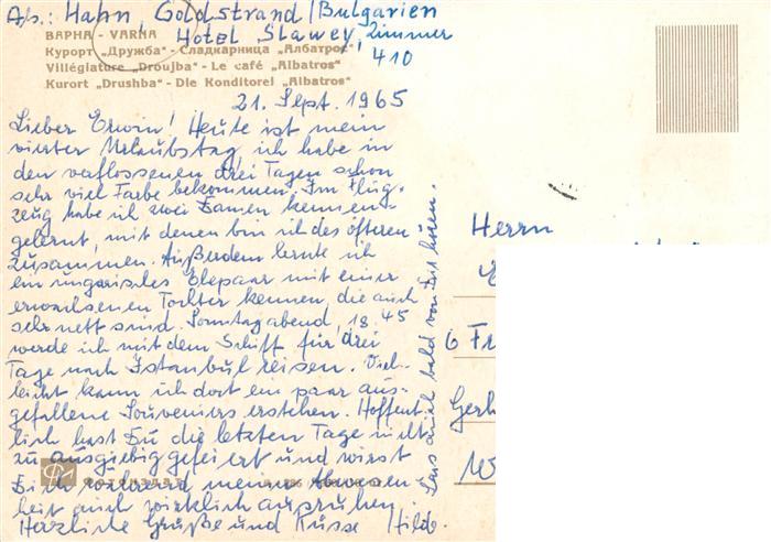 old postcard Drushba BG Konditorei Albatros postalisch gelaufen Erhaltung siehe scans [WerneD78]