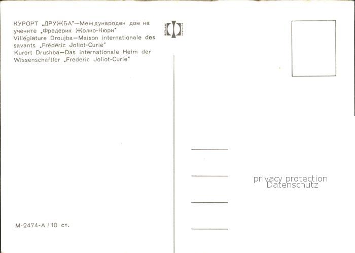 Drushba Bulgarien Internationale Heim Wissenschaftler Frederic Joliot Curie postalisch nicht gelaufen