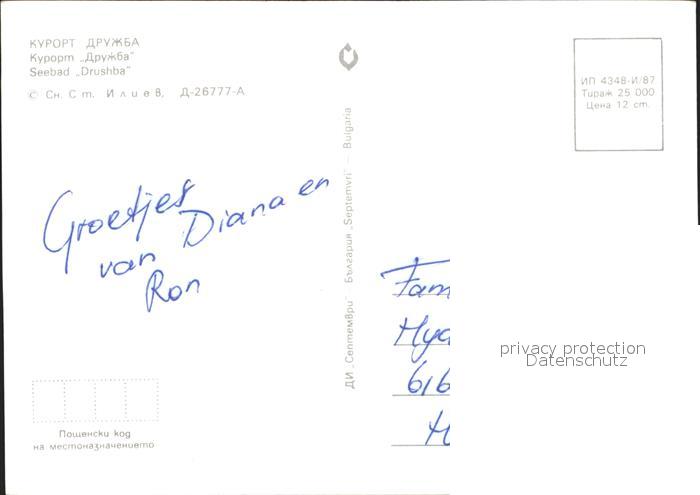 Drushba Bulgarien Seebad Strand Steg postalisch nicht gelaufen Erhaltung siehe scans