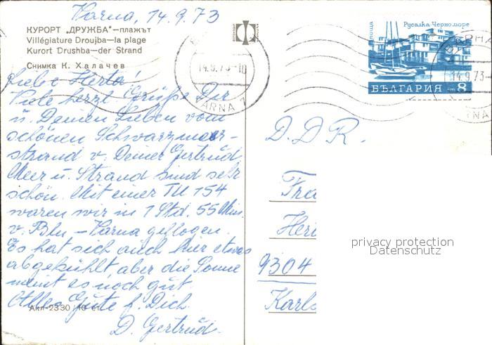 old postcard Drushba Bulgarien Strand postalisch gelaufen Erhaltung siehe scans