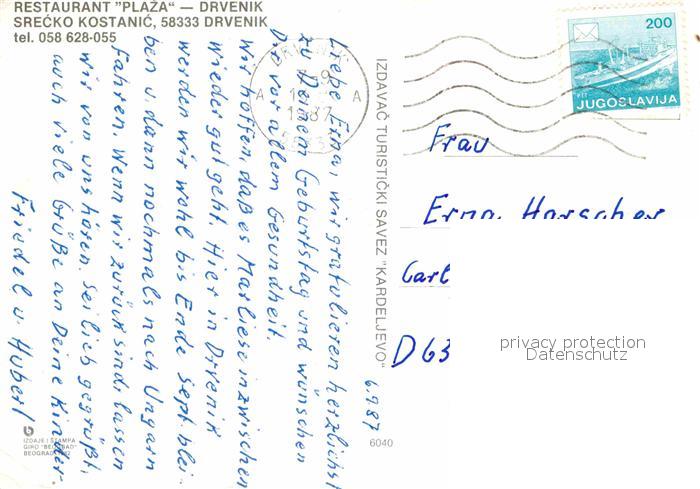 old postcard Drvenik Restaurant Plaza postalisch gelaufen Erhaltung siehe scans [AndreD76]