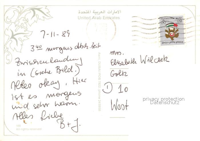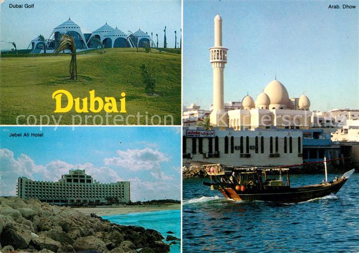 old postcard Dubai Golf Jebel Ali Hotel Arab. Dhow postalisch gelaufen Erhaltung siehe scans [FriedD77]