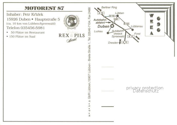 73659570 Duben Motorest 87 Restaurant postalisch nicht gelaufen Erhaltung siehe scans [LiesaD40] KatCode: 11110012061320