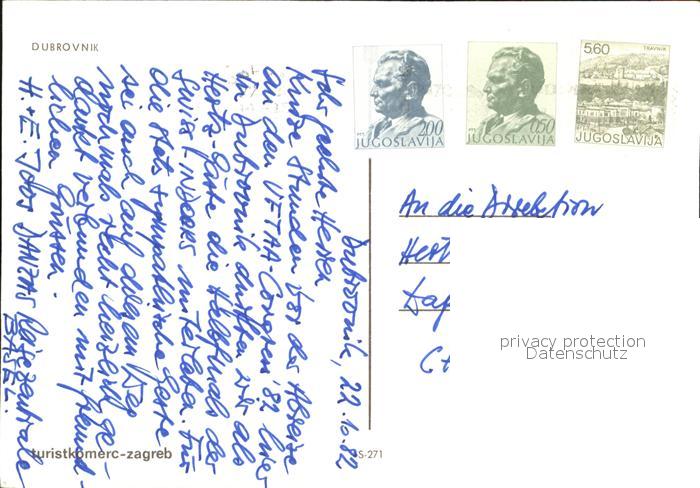 old postcard Dubrovnik Ragusa Altstadt Hafen Festung Nachtaufnahme postalisch gelaufen Erhaltung siehe scans