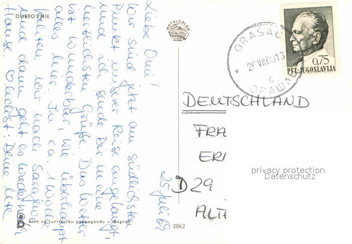 old postcard Dubrovnik Ragusa Altstadt Hafen Fliegeraufnahme postalisch gelaufen Erhaltung siehe scans [FriedD77]