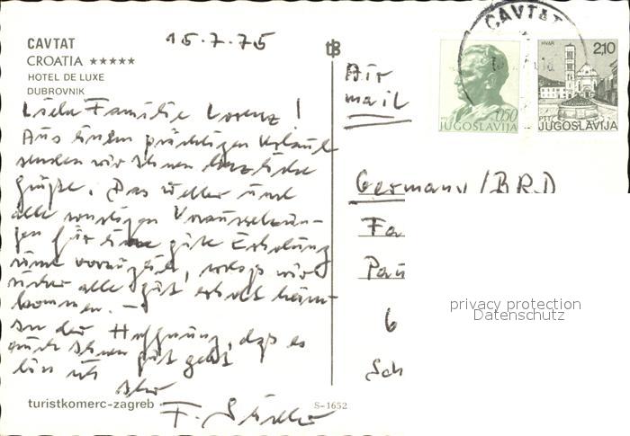 old postcard Dubrovnik Ragusa Croatie Hotel du Luxe Fliegeraufnahme postalisch gelaufen Erhaltung siehe scans