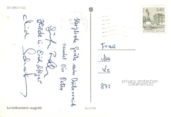 old postcard Dubrovnik Ragusa Fliegeraufnahme Teilansicht postalisch gelaufen Erhaltung siehe scans [LiesaD40]