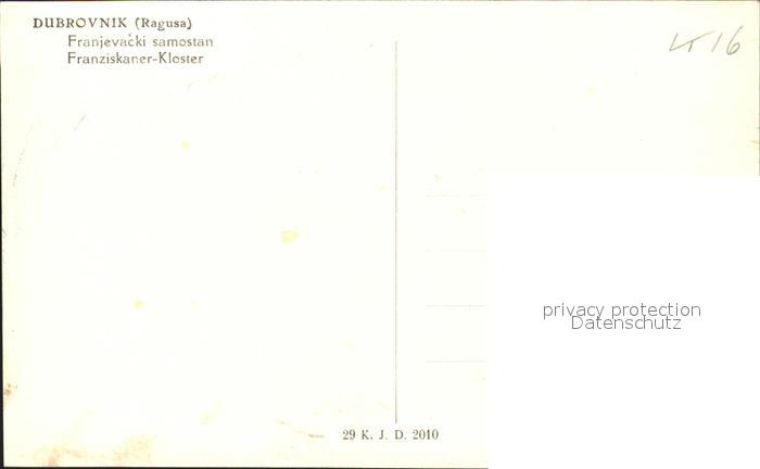 Dubrovnik Ragusa Franjevacki samostan Franziskanerkloster postalisch nicht gelaufen Erhaltung siehe scans