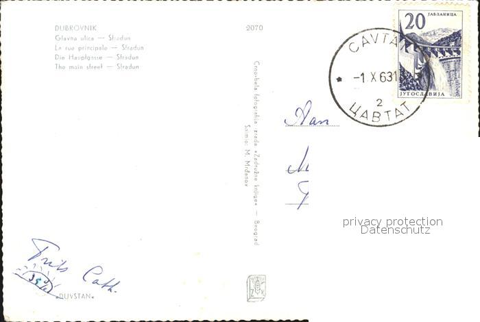 old postcard Dubrovnik Ragusa Glavna Ulica Stradun postalisch gelaufen Erhaltung siehe scans
