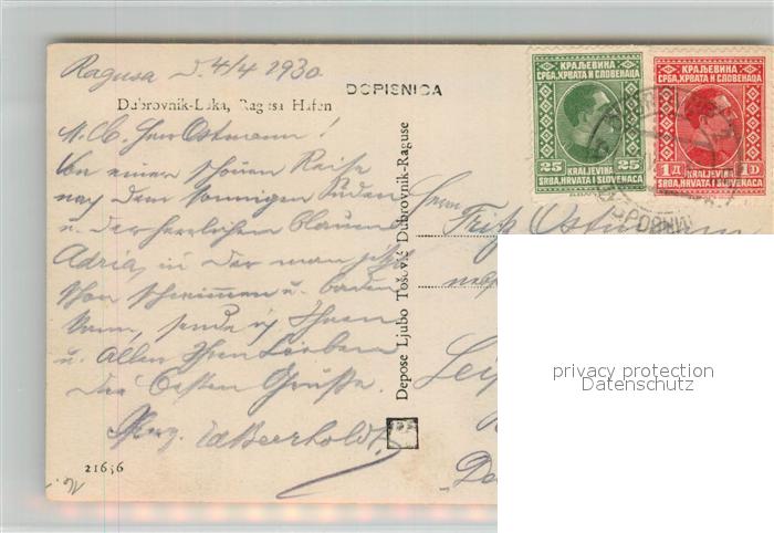 old postcard Dubrovnik Ragusa Hafen postalisch gelaufen Erhaltung siehe scans [LiesaD40]