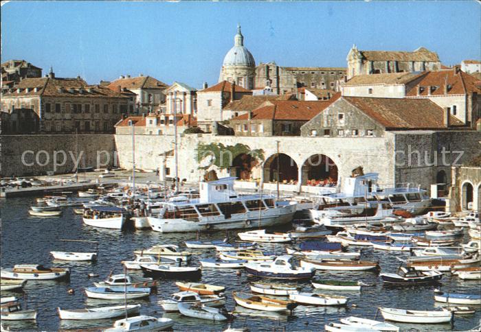 old postcard Dubrovnik Ragusa Hafen Boote postalisch gelaufen Erhaltung siehe scans