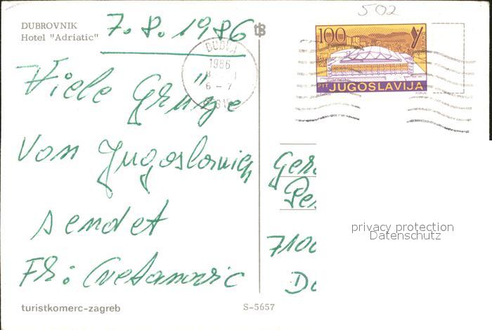 old postcard Dubrovnik Ragusa Hotel Adriatic postalisch gelaufen Erhaltung siehe scans