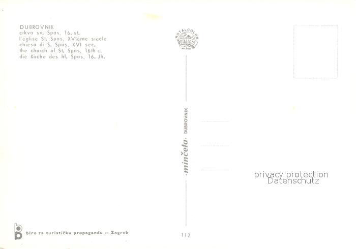 Dubrovnik Ragusa Kirche des hl Spas postalisch nicht gelaufen Erhaltung siehe scans [WerneD78]
