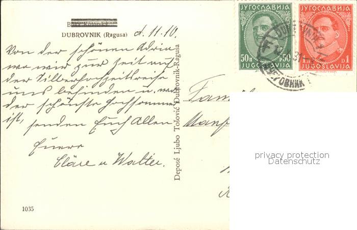 old postcard Dubrovnik Ragusa Palmen Festung postalisch gelaufen Erhaltung siehe scans