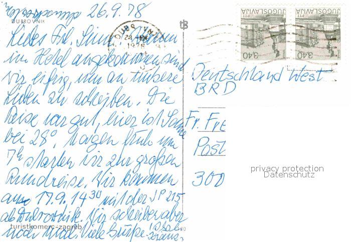 old postcard Dubrovnik Ragusa Panorama Altstadt Festung Baumbluete Platz Arkaden postalisch gelaufen Erhaltung siehe scans [FriedD77]