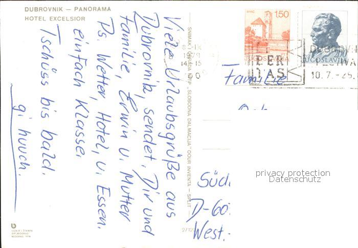 old postcard Dubrovnik Ragusa Panorama Hotel Excelsior postalisch gelaufen Erhaltung siehe scans
