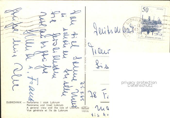 old postcard Dubrovnik Ragusa Panorama und Insel Lokrum Stadtmauer postalisch gelaufen Erhaltung siehe scans