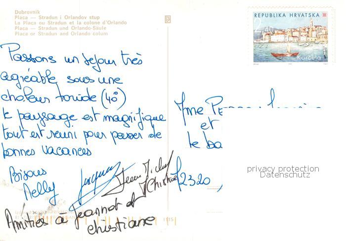 old postcard Dubrovnik Ragusa Placa Stradun Orlando Saeule postalisch gelaufen Erhaltung siehe scans [FriedD77]