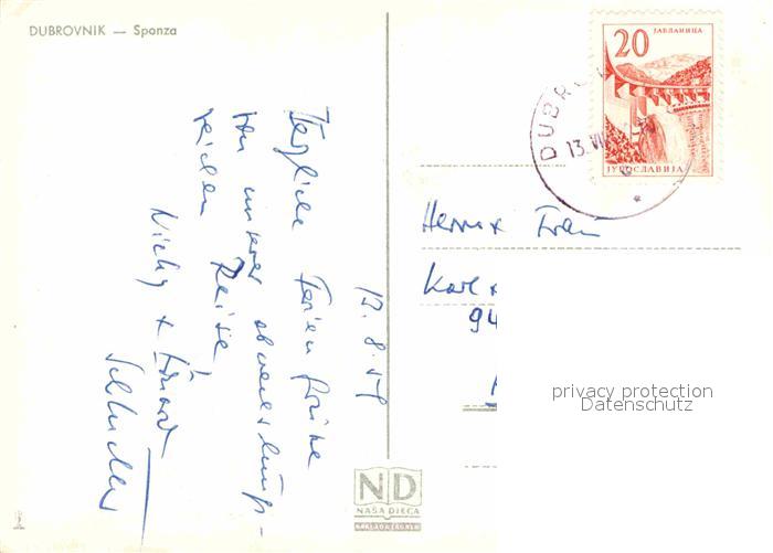 old postcard Dubrovnik Ragusa Sponza postalisch gelaufen Erhaltung siehe scans [FriedD77]