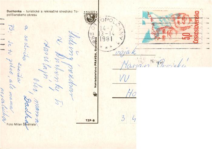 old postcard Duchonka Prasice-Duchonka Slovakia Turisticke a rekreacne stredisko Topolcianskeho okresu postalisch gelaufen Erhaltung siehe scans [WerneD78]