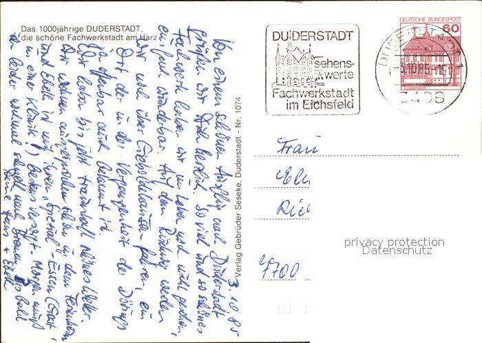 alte Postkarte Duderstadt Dorfmotive Fachwerkhaeuser postalisch gelaufen Erhaltung siehe scans