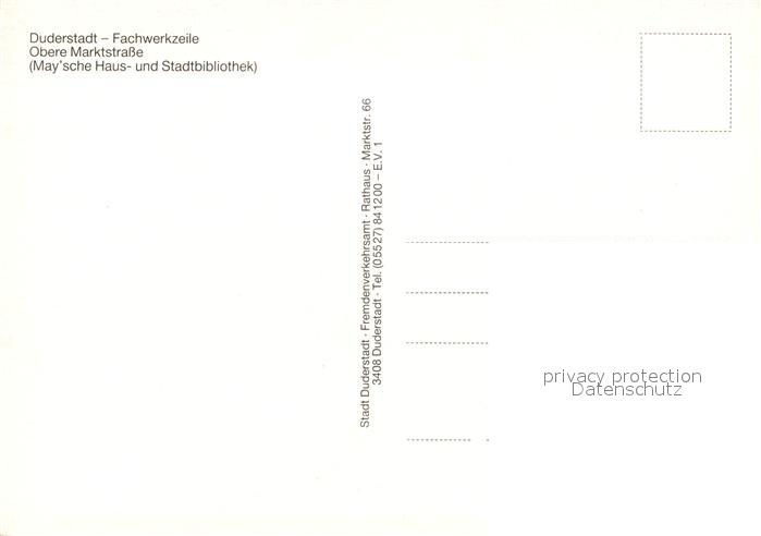 73231099 Duderstadt Fachwerkzeile Obere Marktstra?e Maysche Haus Stadtbibliothek postalisch nicht gelaufen Erhaltung siehe scans [KathaD81] KatCode: 11110003152007