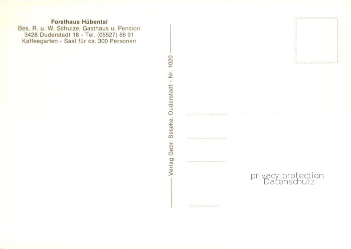 73846638 Duderstadt Niedersachsen Forsthaus Huebental Kaffeegarten Gastraeume Zimmer postalisch nicht gelaufen Erhaltung siehe scans [WerneD78] Wern Katcode 11110003152007