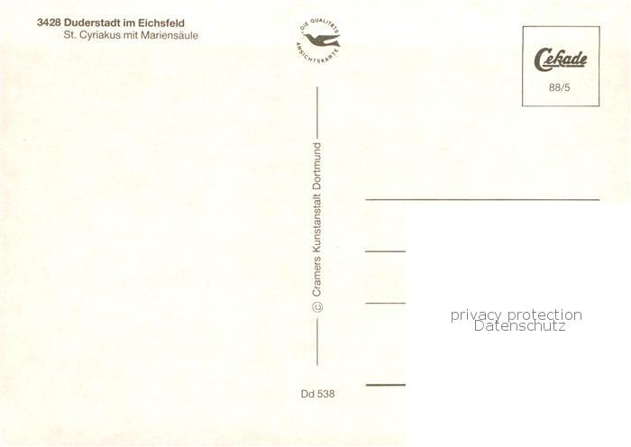 73789547 Duderstadt Niedersachsen Kirche St Cyriakus mit Mariensaeule postalisch nicht gelaufen Erhaltung siehe scans [WerneD78] Wern Katcode 11110003152007
