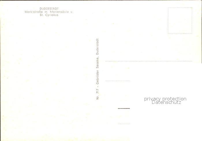 71978383 Duderstadt Niedersachsen Marktstrasse mit Mariensaeule und St Cyriakus Kirche postalisch nicht gelaufen Erhaltung siehe scans KatCode: 11110003152007