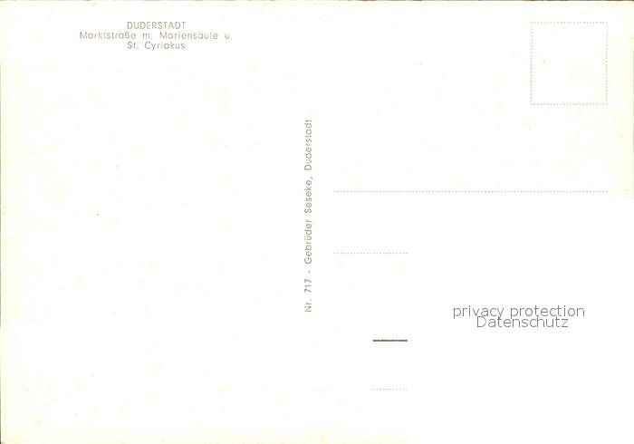 72090539 Duderstadt Niedersachsen Marktstrasse mit Mariensaeule postalisch nicht gelaufen Erhaltung siehe scans KatCode: 11110003152007