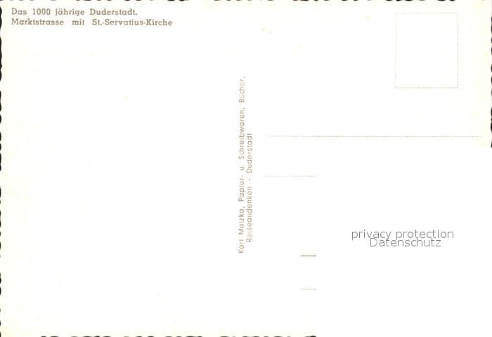 72315295 alte Postkarte Duderstadt Niedersachsen Marktstrasse mit Sankt Servatius Kirche postalisch gelaufen Erhaltung siehe scans KatCode: 11110003152007