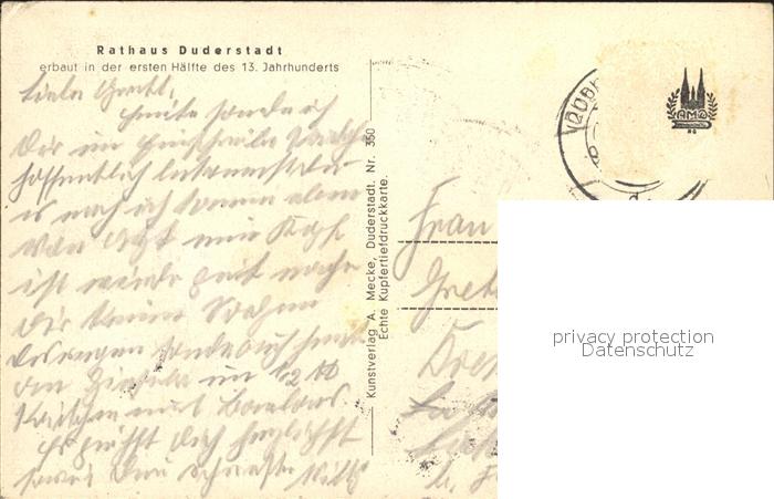 72186606 alte Postkarte Duderstadt Niedersachsen Rathaus postalisch gelaufen Erhaltung siehe scans KatCode: 11110003152007