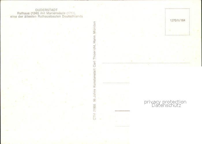 72518940 Duderstadt Niedersachsen Rathaus Mariensaeule postalisch nicht gelaufen Erhaltung siehe scans KatCode: 11110003152007