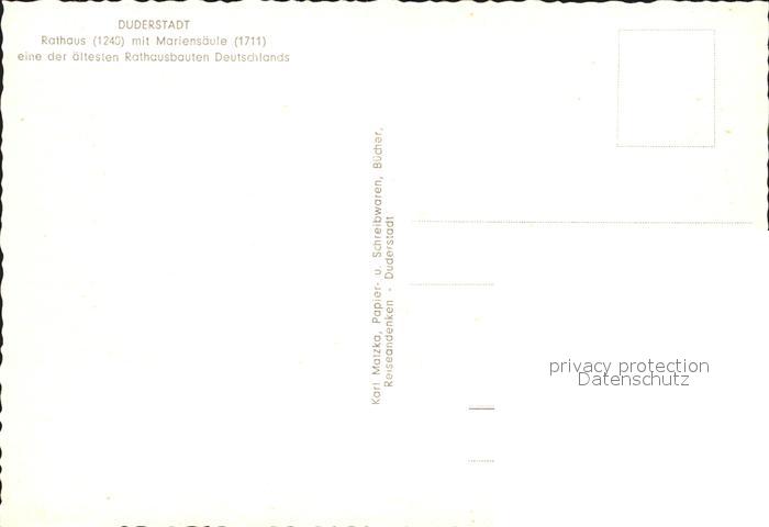 72315296 Duderstadt Niedersachsen Rathaus mit Mariensaeule postalisch nicht gelaufen Erhaltung siehe scans KatCode: 11110003152007