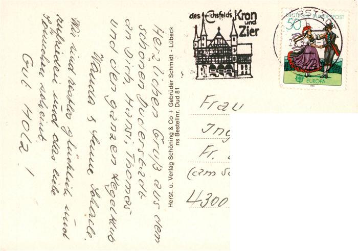 73943847 Duderstadt Niedersachsen Schwanenteich Bahnhofstr Wall Anlagen Mariensaeule Westerturm St Cyriakstr Rathaus Marktstrasse und Servatiuskirche postalisch gelaufen Erhaltung siehe scans [WerneD78] alte Postkarte Wern Katcode 11110003152007
