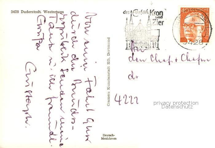 73874004 Duderstadt Niedersachsen Westerturm postalisch gelaufen Erhaltung siehe scans [WerneD78] alte Postkarte Wern Katcode 11110003152007