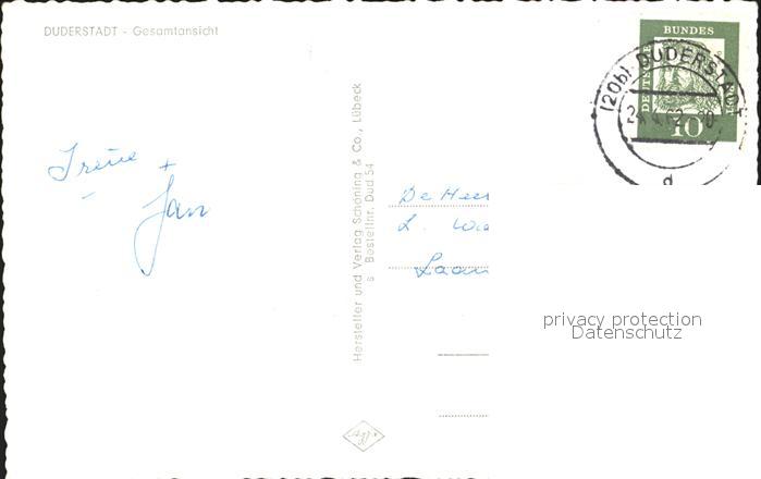 72168179 alte Postkarte Duderstadt Niedersachsen postalisch gelaufen Erhaltung siehe scans KatCode: 11110003152007