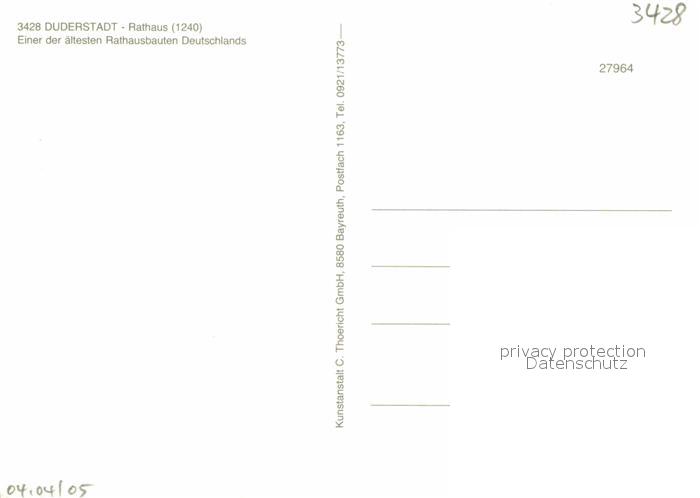 72912332 Duderstadt Rathaus 13. Jhdt. Historisches Gebaeude Fachwerkhaus postalisch nicht gelaufen Erhaltung siehe scans [FriedD77] KatCode: 11110003152007