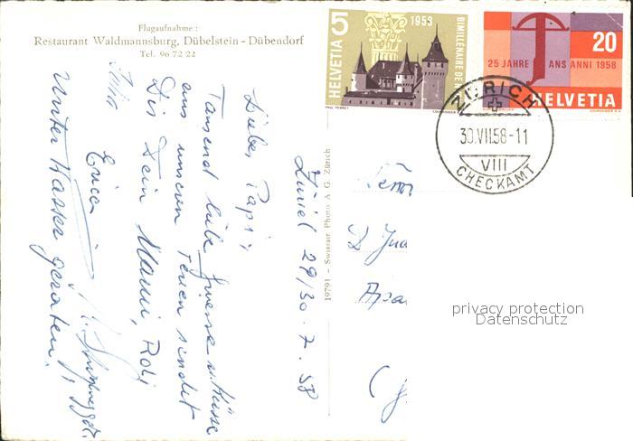 11635811 alte Postkarte Duebelstein Restaurant Waldmannsburg Fliegeraufnahme postalisch gelaufen Erhaltung siehe scans KatCode: 11470260905442