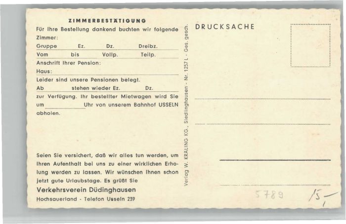 40683674 Duedinghausen Medebach postalisch nicht gelaufen KatCode: 11110005958028