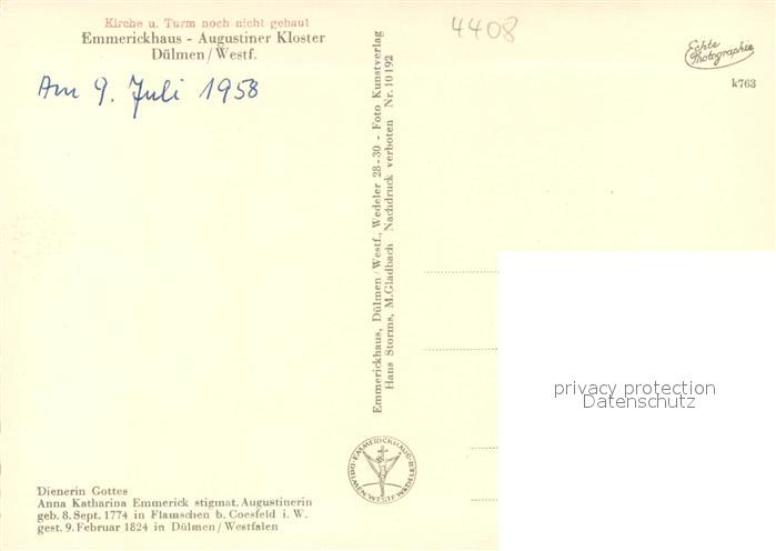 73695180 Duelmen Emmerickhaus Augustiner Kloster postalisch nicht gelaufen Erhaltung siehe scans [WerneD78] KatCode: 11110005558016