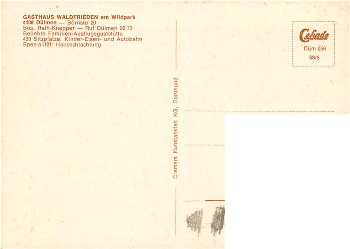 73905200 Duelmen Gasthaus Waldfrieden am Wildpark Gastraeume Wildpferde im Merfelder Bruch postalisch nicht gelaufen Erhaltung siehe scans [FriedD77] KatCode: 11110005558016