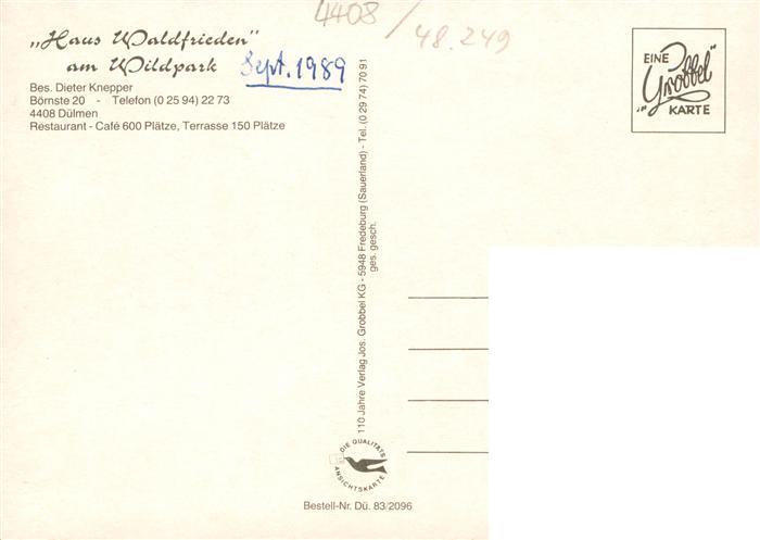 73912480 Duelmen Gasthaus Waldfrieden am Wildpark Gastraum Freiterrasse Wildpferde postalisch nicht gelaufen Erhaltung siehe scans [FriedD77] KatCode: 11110005558016