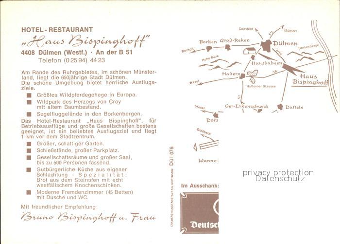 72071630 Duelmen Haus Bispinghoff Gastraeume Theke Teich postalisch nicht gelaufen Werbekarte (keine Postkarte) Erhaltung siehe scans KatCode: 11110005558016